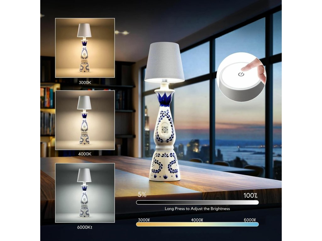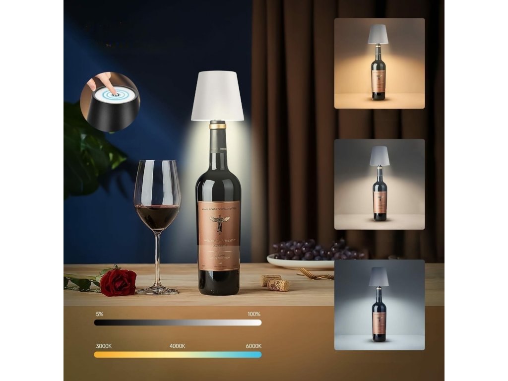 Bezdrátová noční lampa ZD167a je moderní a elegantní osvětlení, které lze snadno umístit na láhev nebo jakýkoli povrch. Je vybavena dotykovým tlačítkem a dvěma režimy barvy světla – teplým a studeným – což vám umožňuje přizpůsobit si osvětlení podle vašich potřeb. Ideální jako dekorativní, noční nebo náladová lampa.