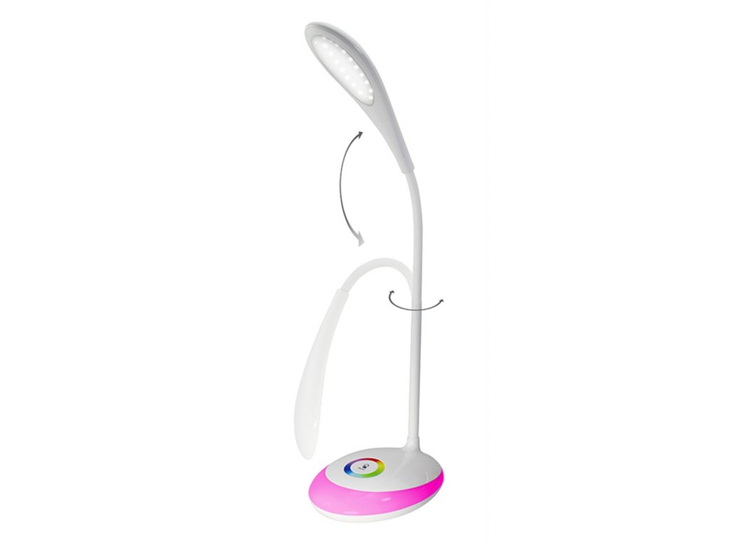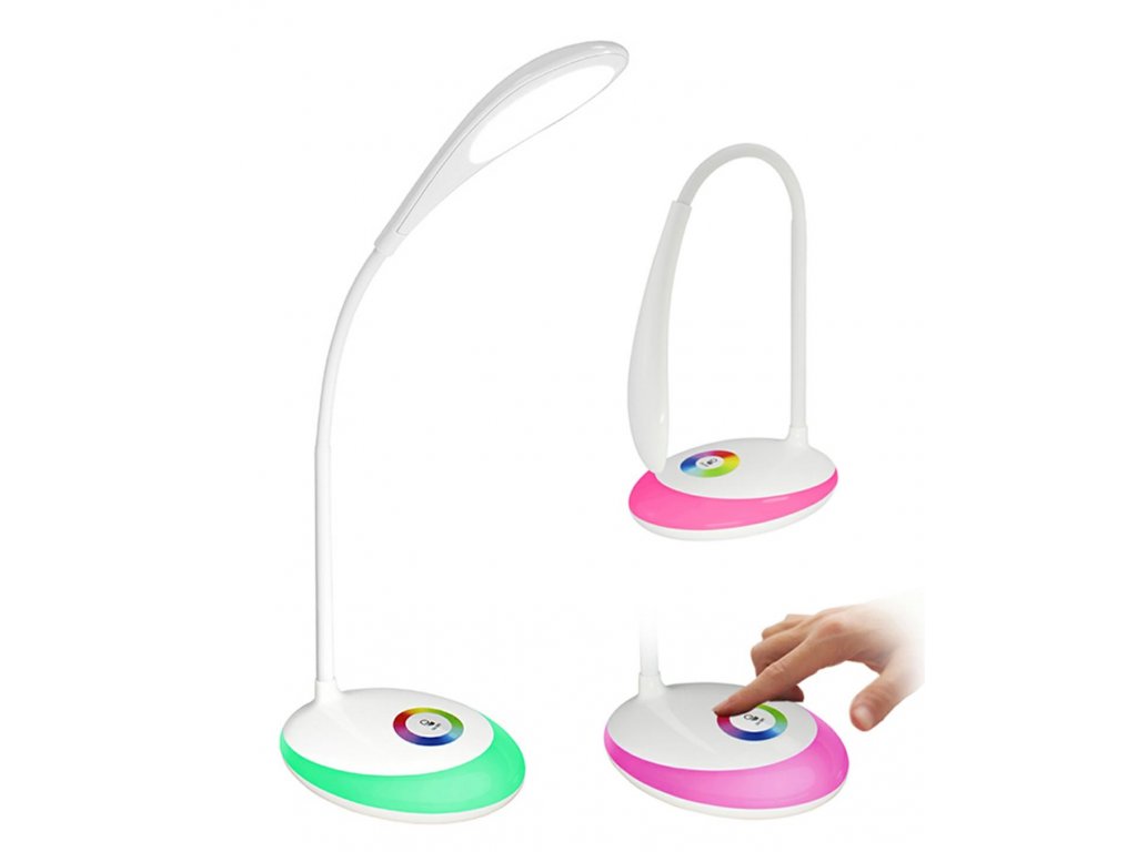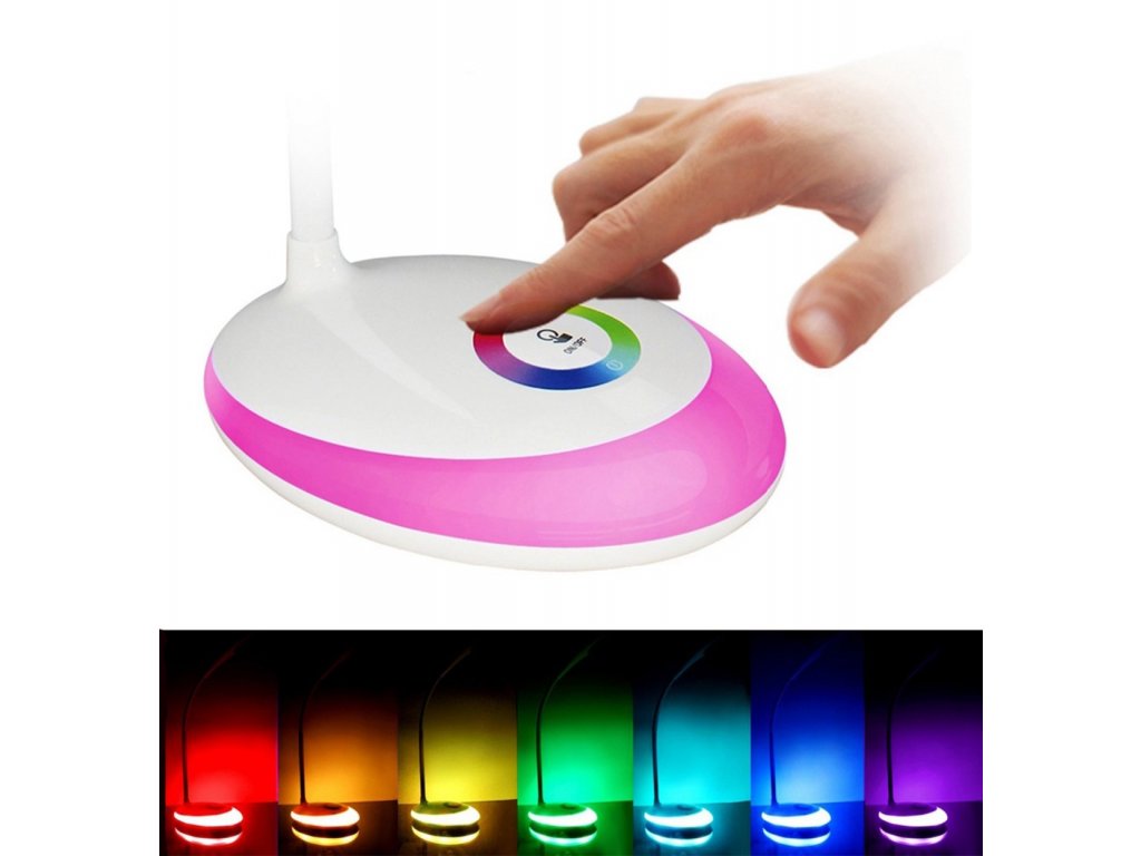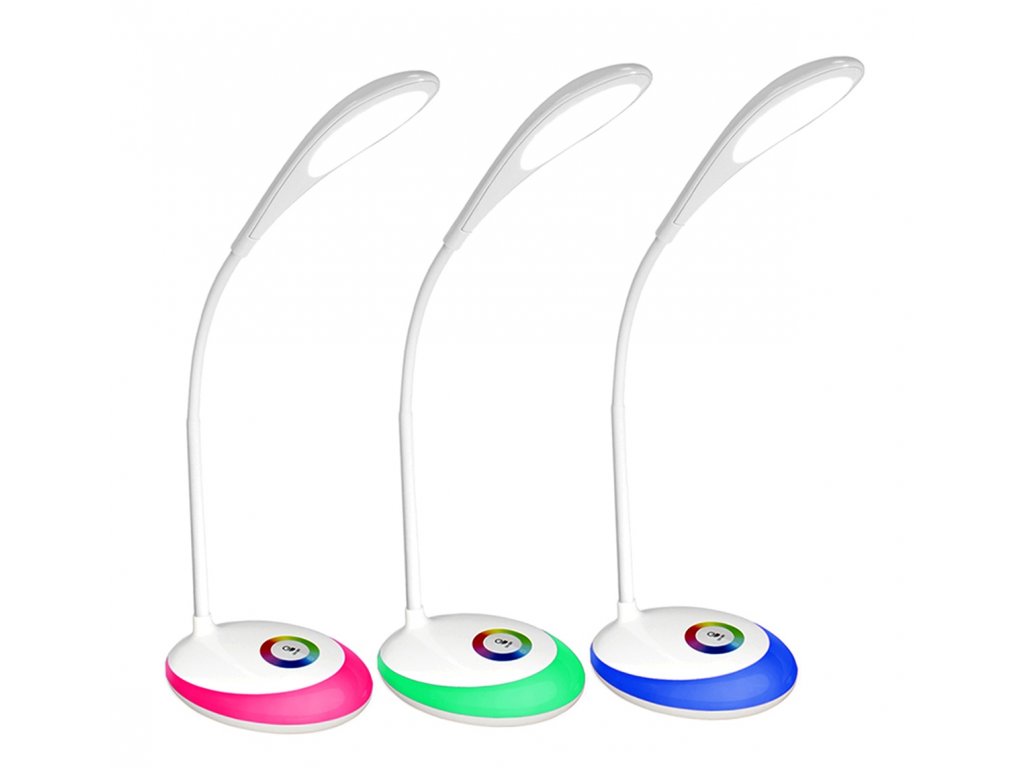 Skvělá stolní LED lampa! Vybaveno funkcí nastavení jasu dotyku až ve 3 úrovních. Díky použití LED diod je extrémně energeticky úsporná. Má základnu podsvícenou v mnoha barvách RGB. Lampa má přídavné flexibilní rameno, které umožňuje nastavit úhel ramene (sklon). Velmi stylový a praktický doplněk ke každému pracovnímu stolu i jako doplňkové osvětlení do dalších místností. Sada také obsahuje 5V USB napájecí zdroj.