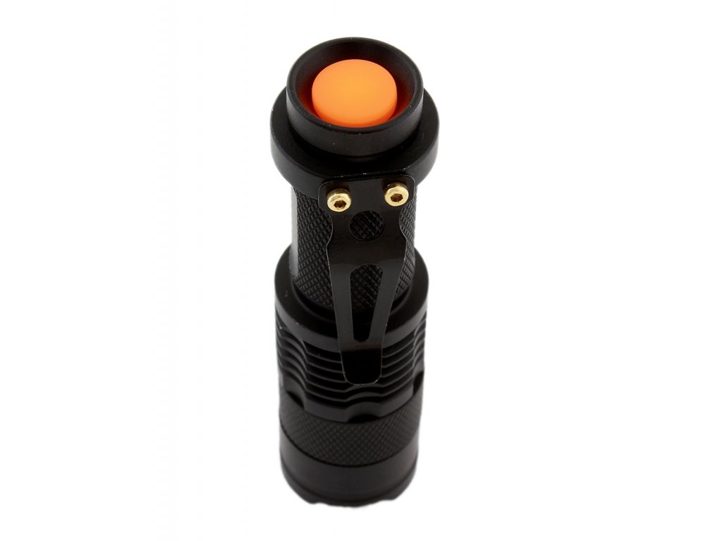 Taktická svítilna s výkonnou UV diodou o vlnové délce 395 nm, ve velmi odolném pouzdře. Svítilna má velmi silný zdroj světla s životností až 50 000 hodin. Zařízení používá výkonné a energeticky úsporné 17500 (x1) baterie nebo 1x AA baterie. Svítilna je také vodotěsná a nárazuvzdorná. Spínač je jištěn pevnou gumou a o-kroužky chrání zařízení před nečistotami a prachem. Funkce proměnné ohniskové vzdálenosti (ZOOM) umožňuje zaostřit nebo rozptýlit ultrafialové světlo v závislosti na vašich potřebách.